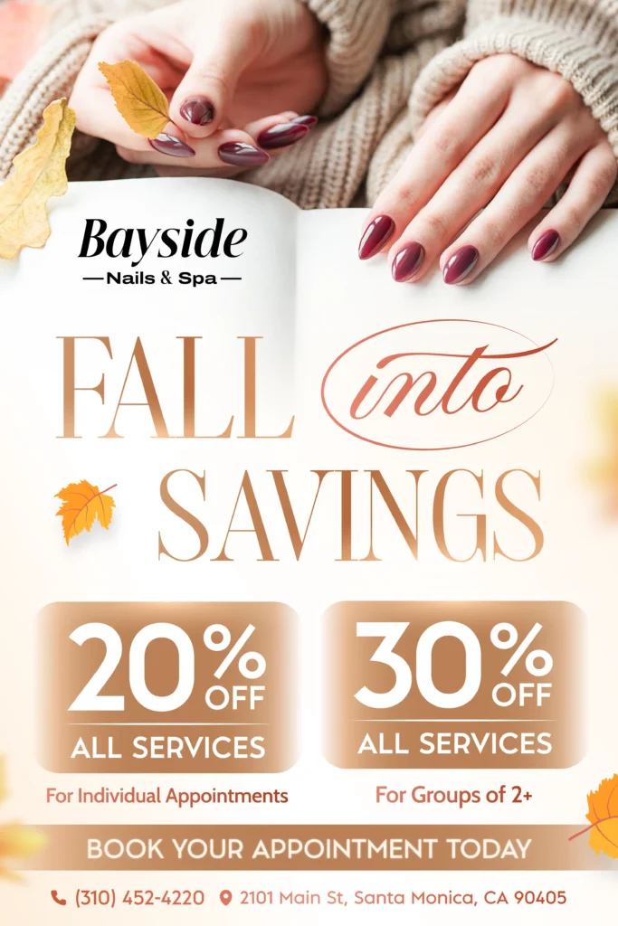 Bayside Nails & Spa is a place where care feels natural and beauty feels effortless. Here, every visit begins with ease and ends with renewal.